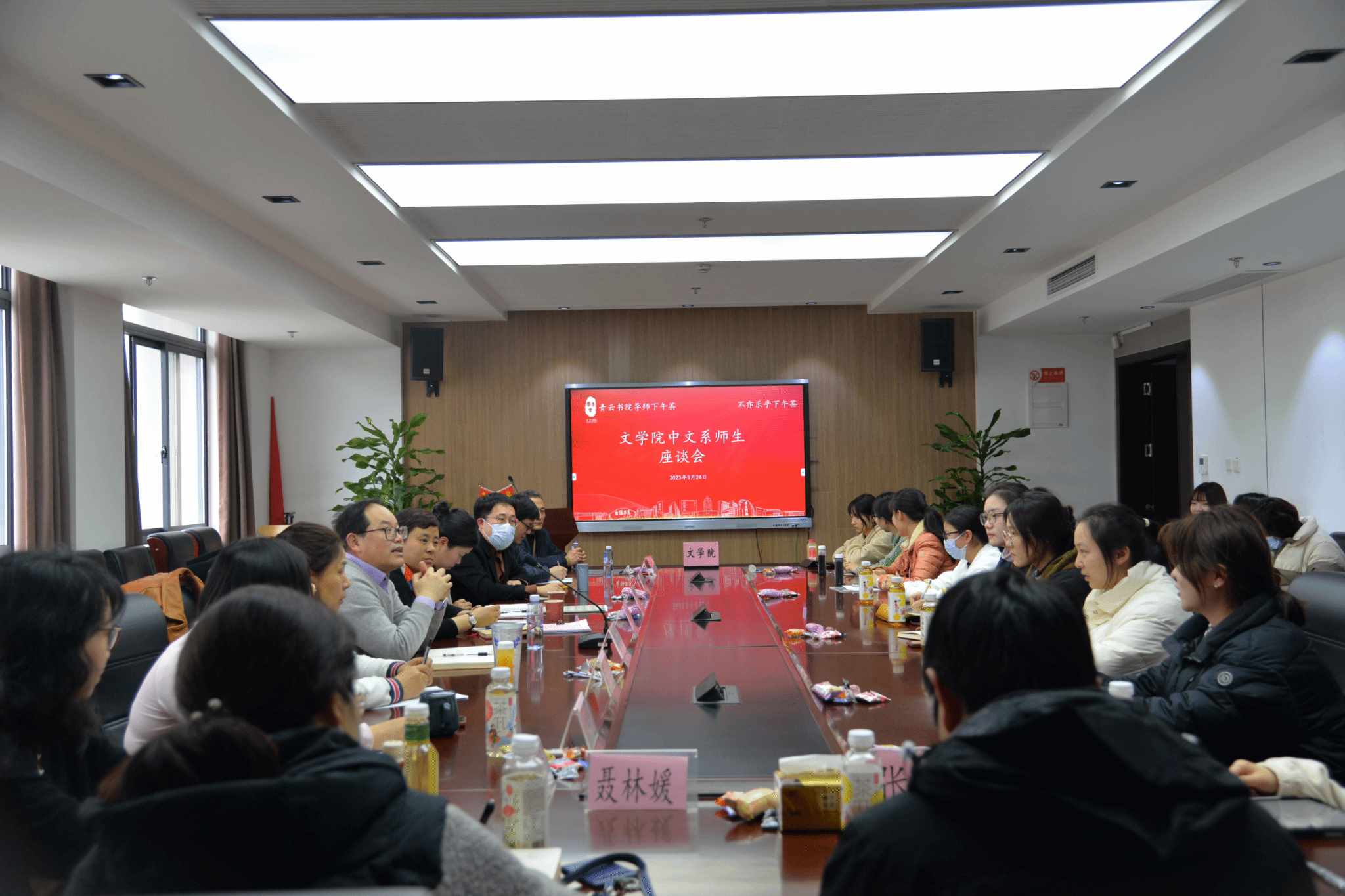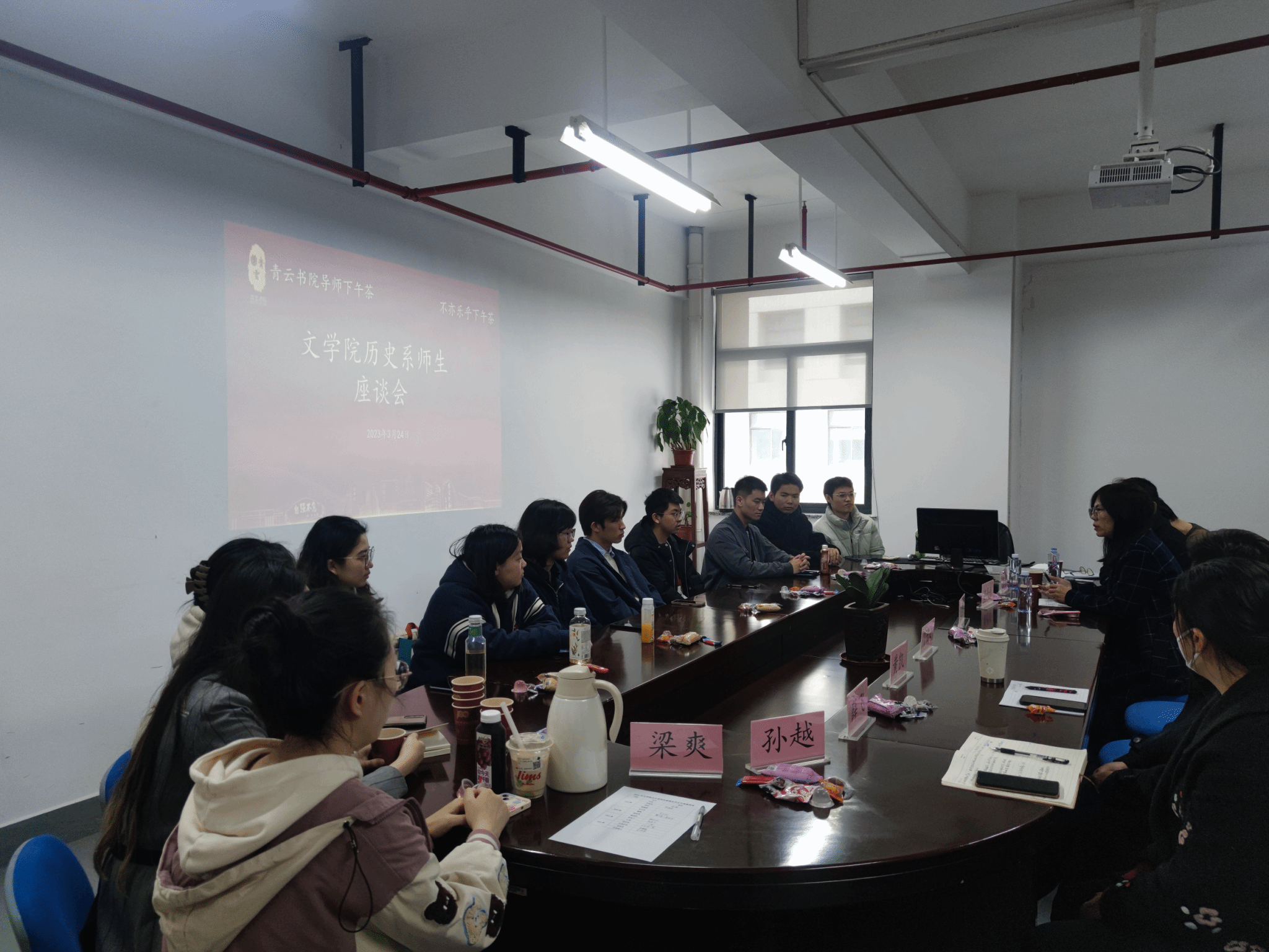 为增进Beat365正版唯一官网必一师生间的交流互动,倾听广大学子心声,拉进师生间距离,进一步做好本科生教育培养工作。2023年3月24日下午,“青云书院导师下午茶•中文系、历史系师生座谈会”分别在学院306会议室、308会议室举行。学院党委书记陆甦颖,党委副书记、副院长丁佳蒙,副院长刘旭光,各系领导,班导师,本科生教学秘书,本科生辅导员及各班级学生代表,共计近60人参加会议。中文系师生座谈会由中文系主任张永禄主持,历史系师生座谈会由历史系主任郭丹彤主持。