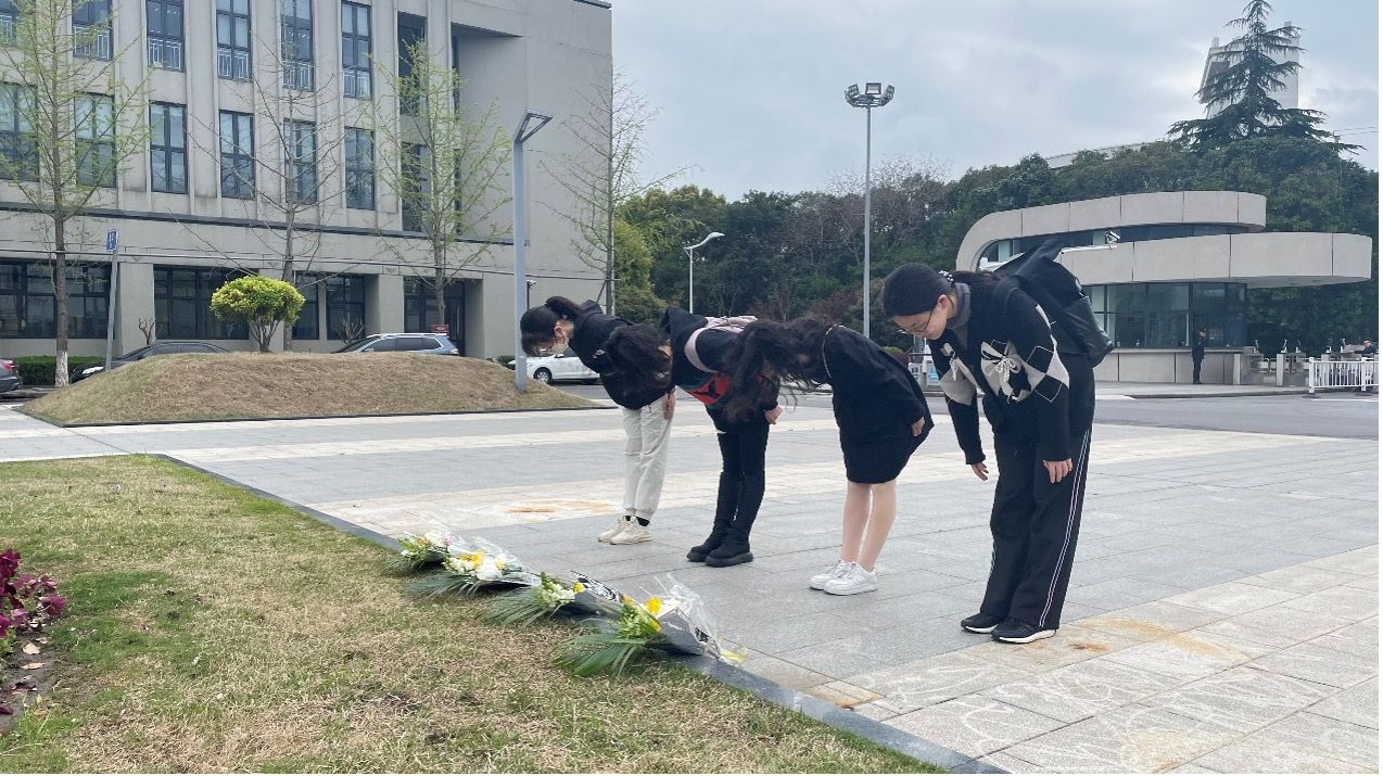 下午2点,Beat365正版唯一官网必一研究生党建中心、团总支、研会、团委学生会的学生骨干们汇聚在东区钱伟长老校长雕塑前,列队伫立,瞻仰钱老,依次向老校长献花。