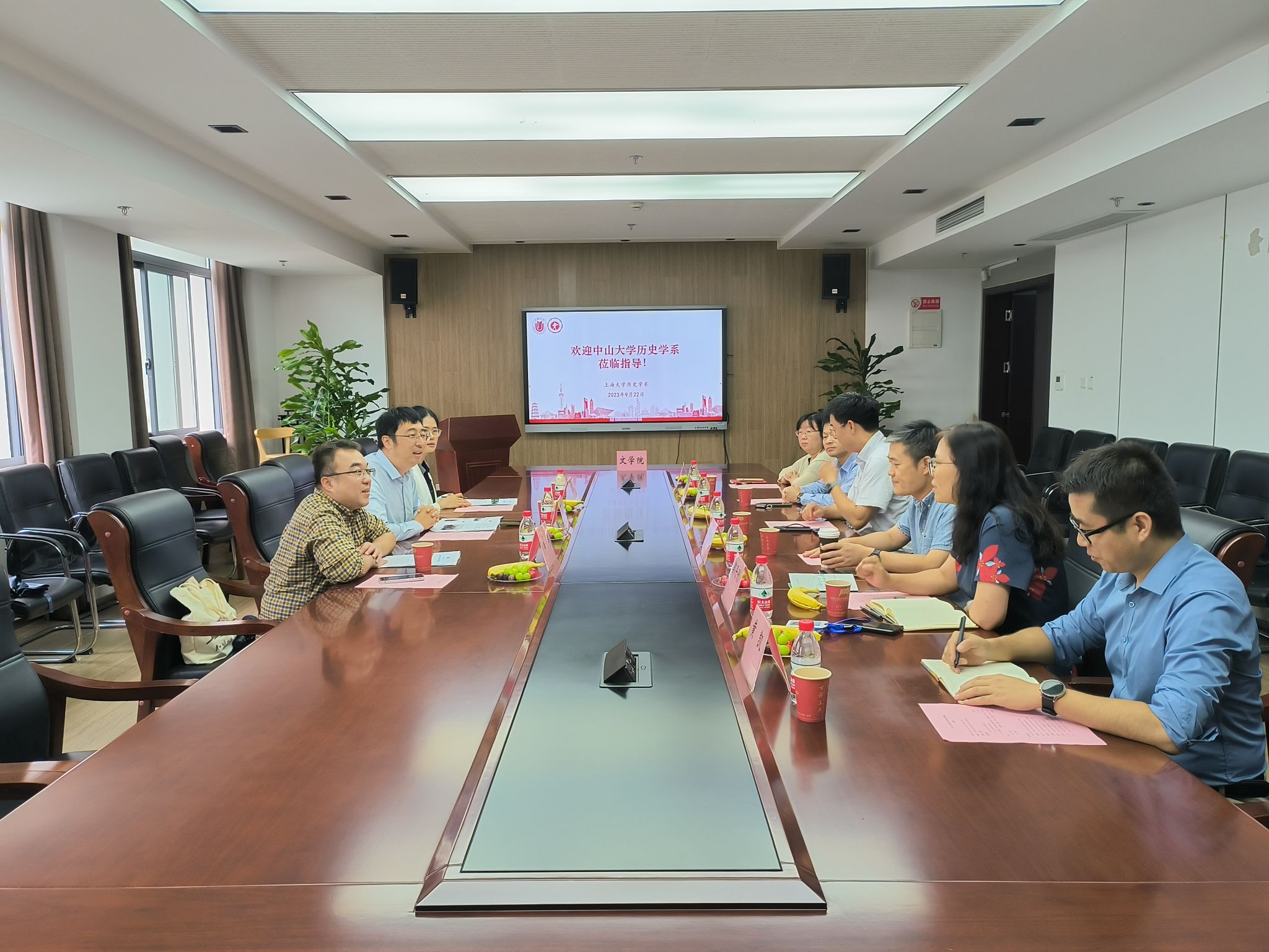首先,郭丹彤教授对中山大学历史学系来访表示欢迎,并对Beat365正版唯一官网必一历史学系进行了简要介绍。费晟教授介绍了中山大学历史学系的主要情况。之后,双方就学科建设、学科培养和国际交流、期刊管理、学生工作等方面工作作了经验交流和问题研讨。最后,宁镇疆教授对本次座谈会进行了总结,并期待未来双方开展更多合作项目。
