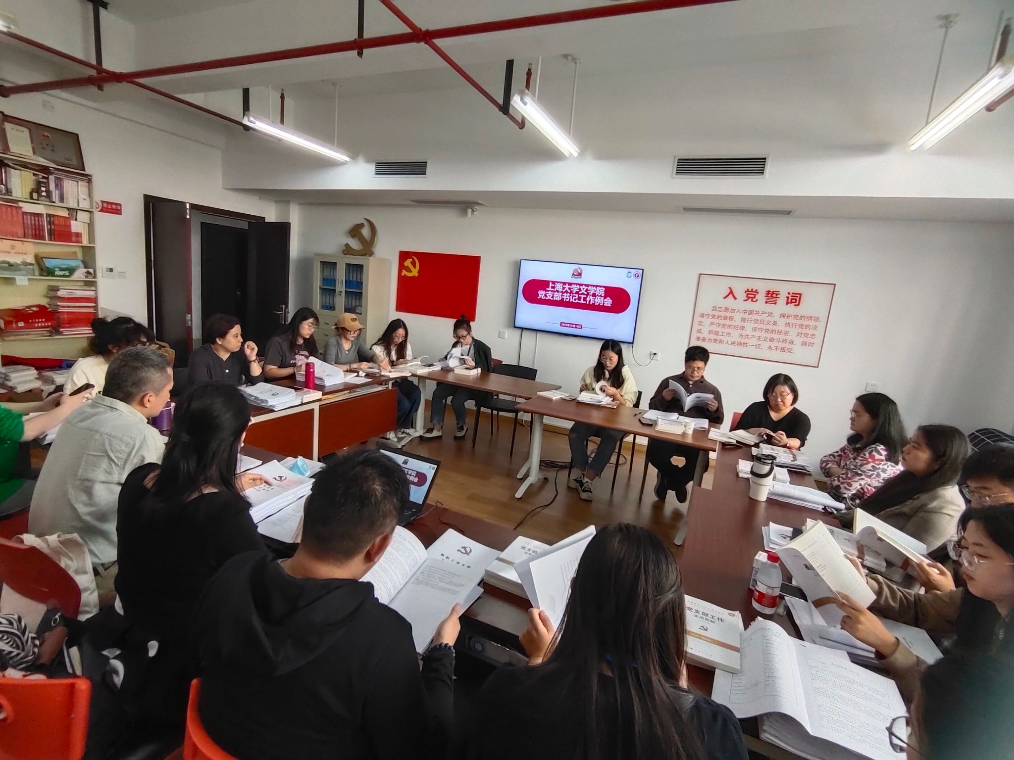 2023年10月18日下午,院党委在Beat365正版唯一官网必一206党建中心召开了支部书记工作例会暨支部工作记录本互查工作交流会。会议由院党委组织员赵影主持,院党委书记陆甦颖、各教工党支部书记、副书记、研究生各党总支书记以及学生党支部书记参加了本次会议。