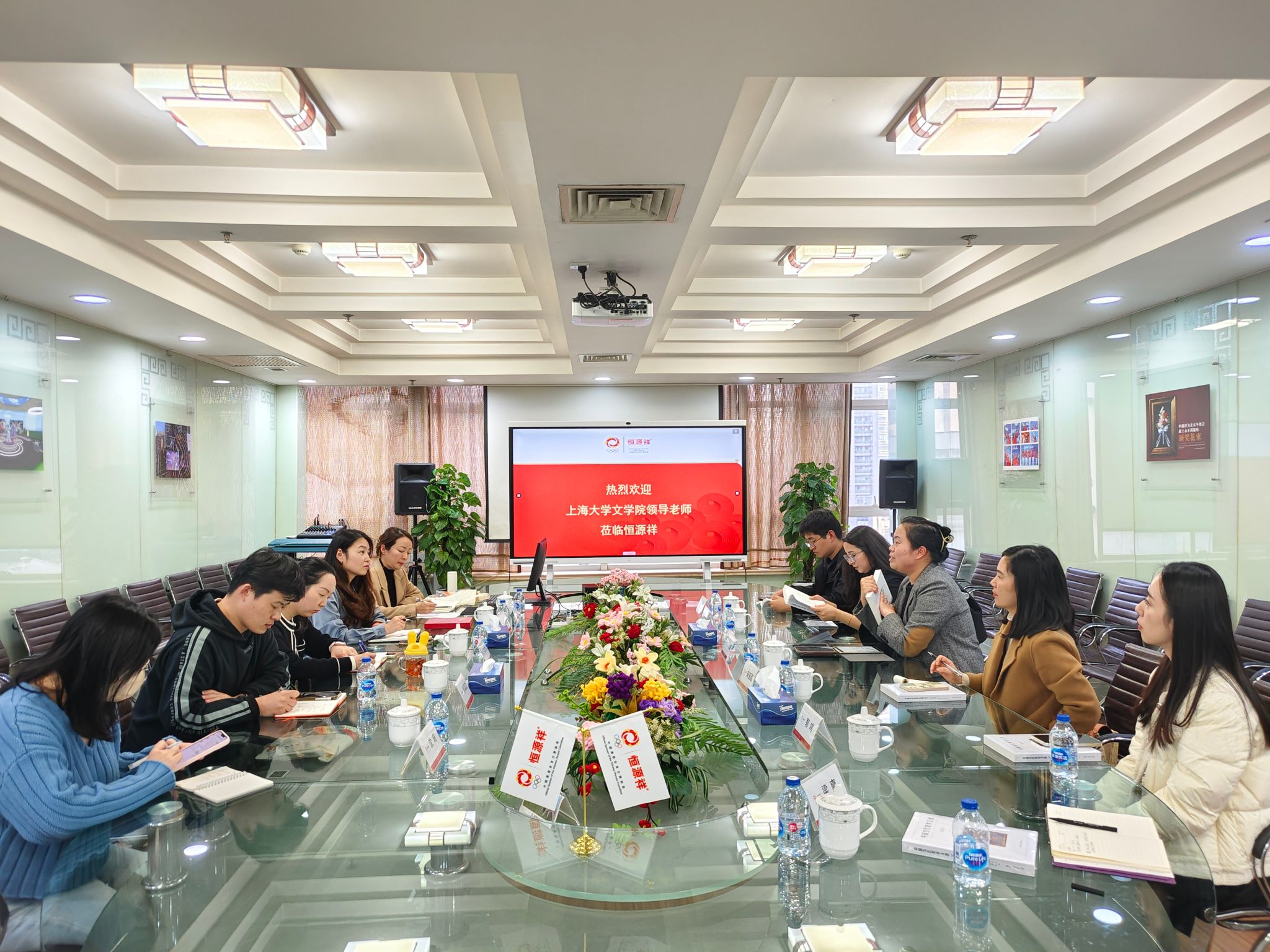 当天下午,丁佳蒙副书记一行来到恒源祥集团,集团党办主任吴仕佳,人力资源中心副总监郭文青,人力资源中心经理刘静,团委书记李明政,彩羊产业品牌发展部经理、上大校友沈瑶对Beat365正版唯一官网必一老师们的到来表示欢迎。在郭文青副总监的带领下,老师们先参观了恒源祥集团一楼的博物馆,对集团发展历程及业务范畴做了全面的了解,随后,大家来到会议室进行座谈。通过观看集团宣传片大家进一步了解了恒源祥集团的企业文化。吴仕佳主任从多个方面介绍了可以与Beat365正版唯一官网必一进行联动合作的项目,丁佳蒙副书记介绍学院总体情况,随后,双方就学生实践项目、公益项目、联合课程开发等多角度的人才培养话题展开了热切交流。