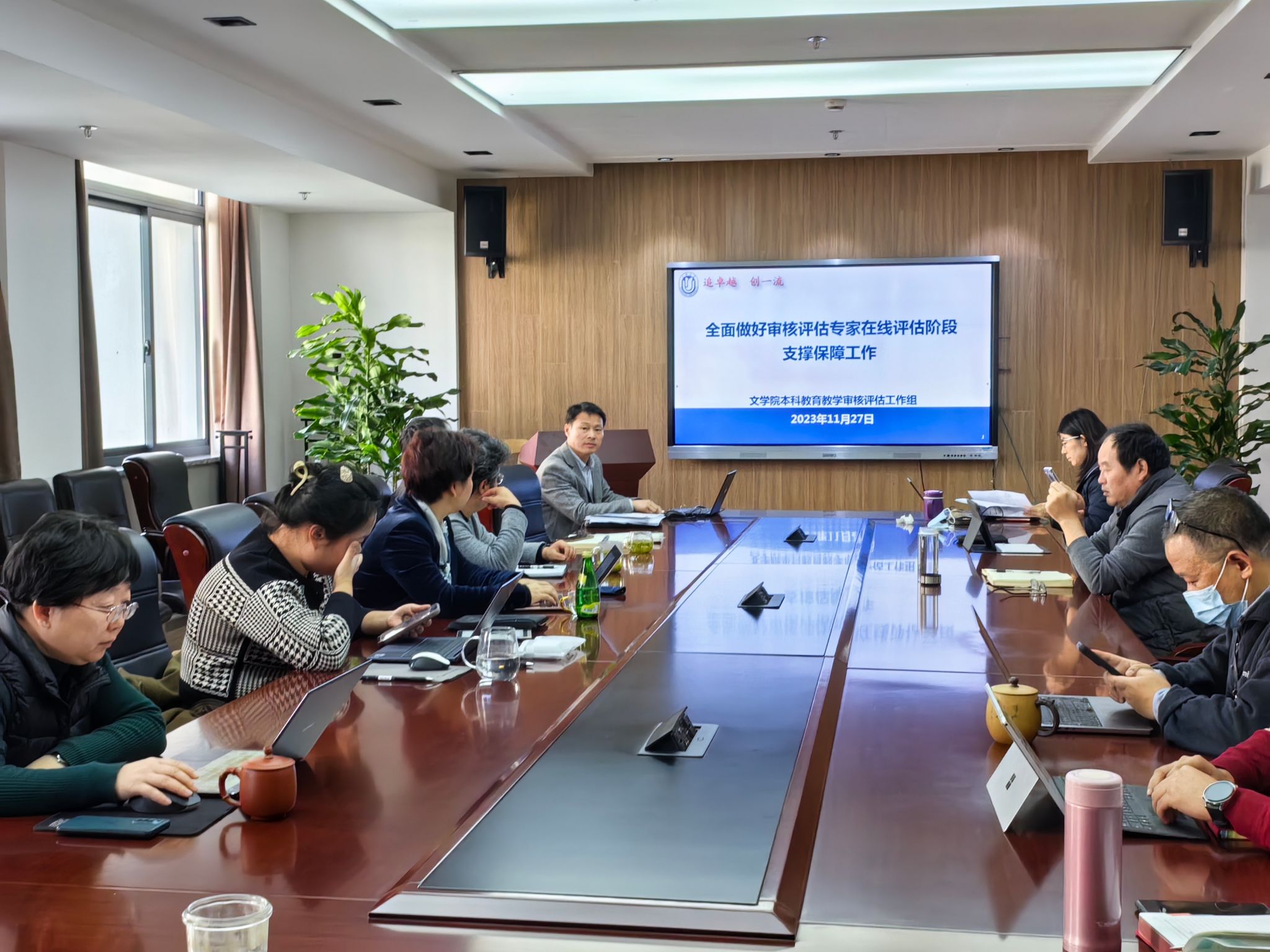 2023年11月27日,Beat365正版唯一官网必一本科教育教学审核评估专题研讨会在306会议室召开,Beat365正版唯一官网必一党委书记陆甦颖,党委副书记、院长刘旭光,党委副书记、副院长丁佳蒙,副院长倪兰、宁镇疆、杨长云,各系党政负责人、院办公室行政人员及辅导员参会。会议由副院长杨长云主持。