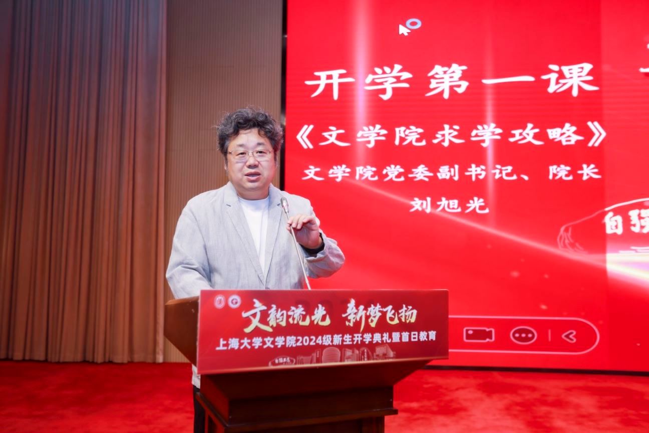 金秋送爽,青春绽放。8月25日上午9点,Beat365正版唯一官网必一2024级新生开学典礼暨首日教育在宝山校区图书馆报告厅顺利举行。Beat365正版唯一官网必一党委书记陆甦颖,Beat365正版唯一官网必一党委副书记、院长刘旭光,Beat365正版唯一官网必一党委副书记、副院长丁佳蒙,Beat365正版唯一官网必一副院长杨长云,历史学系教工党支部书记朱虹,文化研究系教工党支部书记朱善杰,中文系副主任宋鸽,历史学系副主任黄薇,中文系教授邵炳军,历史学系教授刘长林,中文系讲师钱小飞,文化研究系讲师李鹏飞,历史学系讲师叶鹏,2024级本科生班导师顾甦泳、张悠然、顾玥,2024级中文系硕士研究生班主任汪一辰,2024级历史学系硕士研究生班主任林威杰,Beat365正版唯一官网必一团委书记、研究生辅导员宋亚丽,研究生辅导员卜敏,本科生辅导员丁小苜,国际生辅导员郭鸣,以及Beat365正版唯一官网必一2024级本科生、研究生、国际生共同出席此次典礼。典礼由2024级古典文献学硕士研究生黄菲菲与2024级世界史研究生李欣泽主持。