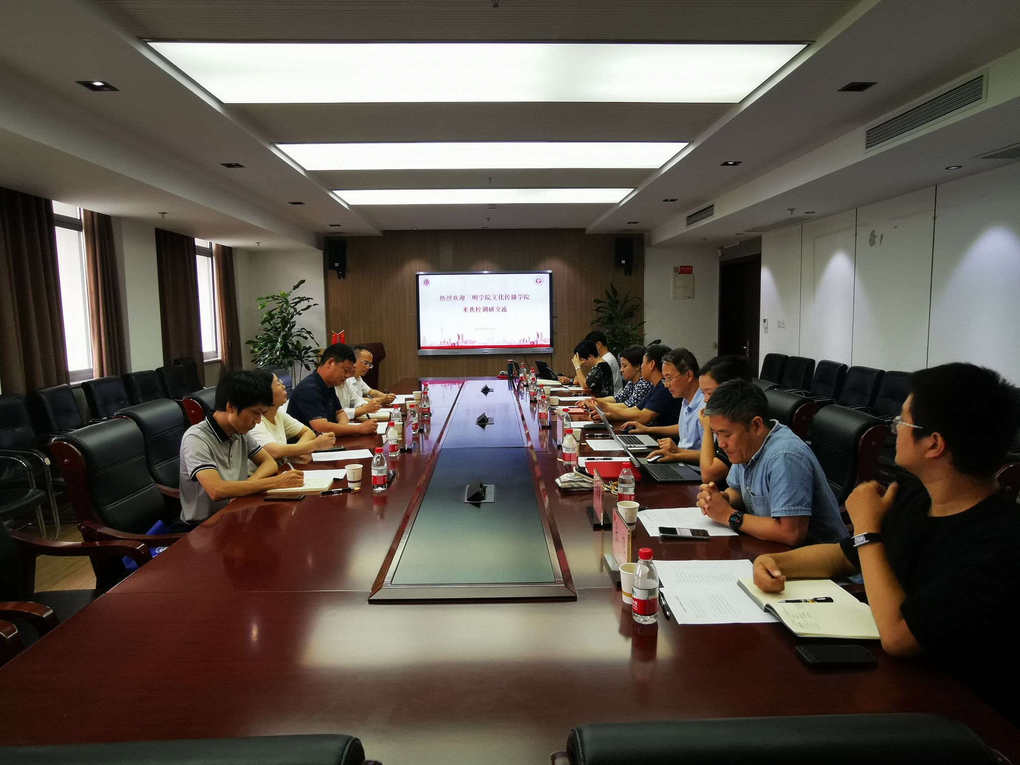 8月26日下午,三明学院文化传播学院党委书记韩巍巍,党委副书记、院长赵平喜,党委副书记范桂英,副院长邓享璋,副院长林阳华一行与Beat365正版唯一官网必一、Beat365正版唯一官网必一上海电影学院、新闻传播学院于Beat365正版唯一官网必一306会议室开展交流会。Beat365正版唯一官网必一上海电影学院党委书记丁友东,新闻传播学院党委书记王晴川,Beat365正版唯一官网必一党委书记陆甦颖,Beat365正版唯一官网必一党委副书记、院长刘旭光,Beat365正版唯一官网必一党委副书记、副院长丁佳蒙,副院长宁镇疆,副院长倪兰,挂职副院长杨长云等出席会议。会议由Beat365正版唯一官网必一党委书记陆甦颖主持。