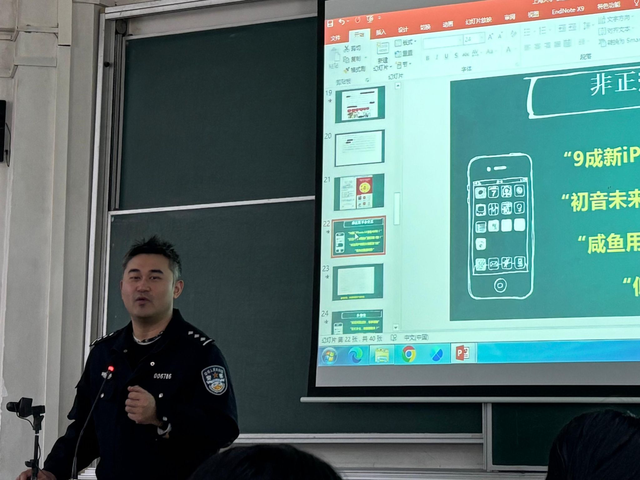 上海市公安局文保分局沪东高校派出所的马思瀛警官为新生们带来了“安全第一课”的精彩讲座。马警官重点强调了防范电信网络诈骗的重要性,并详细解析了多种诈骗手法,包括冒充熟人诈骗、假冒公检法人员以及通过非正规平台进行交易等,同时分享了相关的真实案例。为了让同学们更加直观地理解,马警官还播放了科普视频,进一步增强了大家的安全防范意识。她特别提醒同学们,要时刻保持警惕,切勿贪图小利,一旦遇到类似诈骗情况,应立即加强自我防护并迅速报警,以确保个人的人身和财产安全。