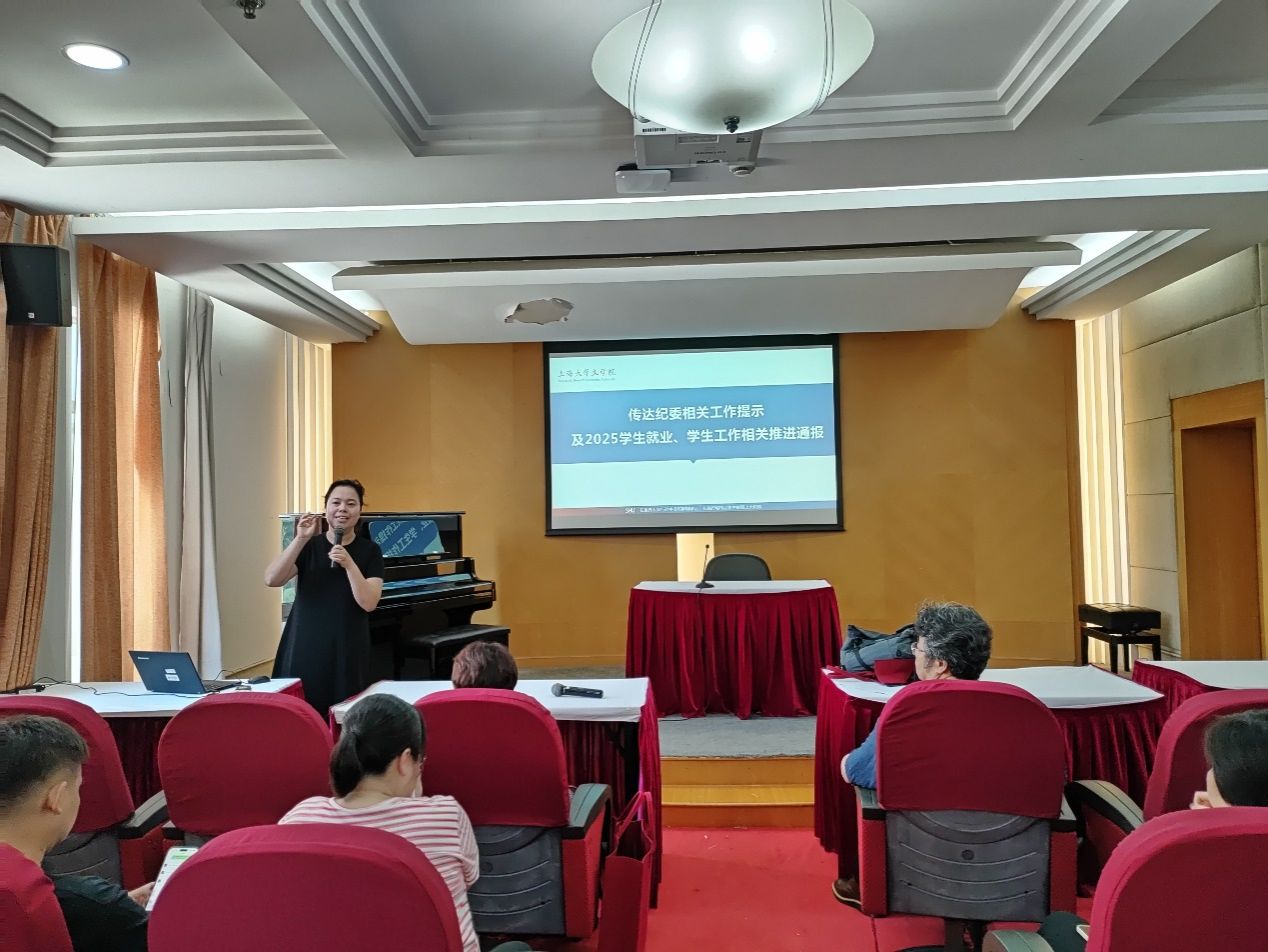 党委副书记、副院长丁佳蒙传达了学校纪委相关工作提示,并就学生就业、学生工作进行了通报。