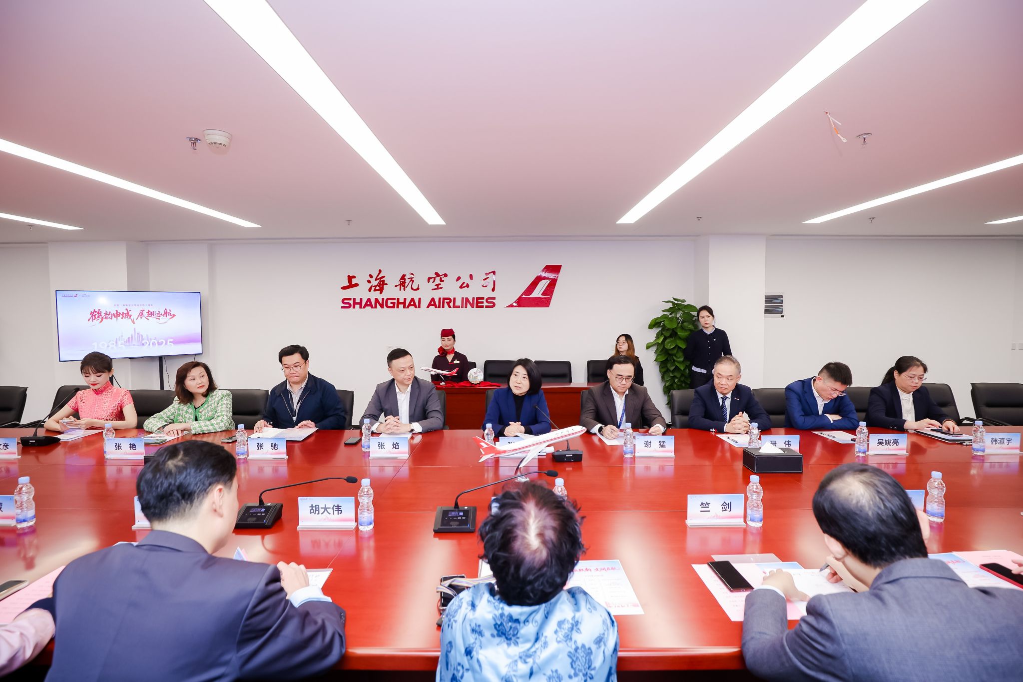 仪式伊始,陈东、胡大伟带队参观了上航企业文化展厅,感受上海航空成立40年来筚路蓝缕、展翅远航的发展历程。