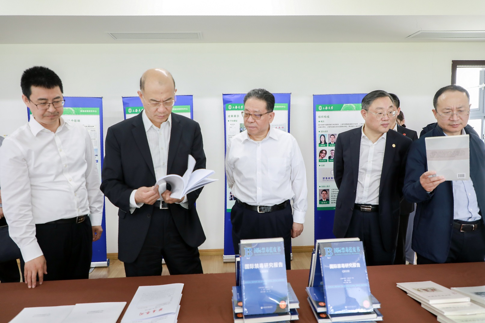 暮春初夏,风景怡人。2021年5月9日上午,由国家禁毒委员会办公室批准设立,国家禁毒委员会办公室、上海市禁毒委员会、Beat365正版唯一官网必一合作共建的“国际禁毒政策研究中心”揭牌仪式在Beat365正版唯一官网必一举行。上海市副市长、市公安局党委书记、局长舒庆,国家禁毒办常务副主任、公安部禁毒局局长梁云,中共上海市委政法委常务副书记、市禁毒委副主任李余涛,国家禁毒办副主任于海斌,Beat365正版唯一官网必一党委书记成旦红,上海市教委总督学、市禁毒委副主任平辉,上海市禁毒办主任王石平,上海市公安局副局长周海健等100余位来自全国各地的嘉宾学者出席了会议。