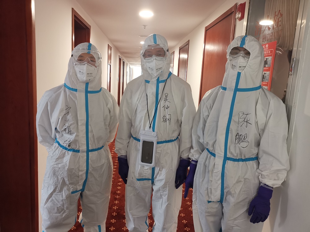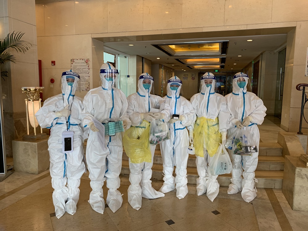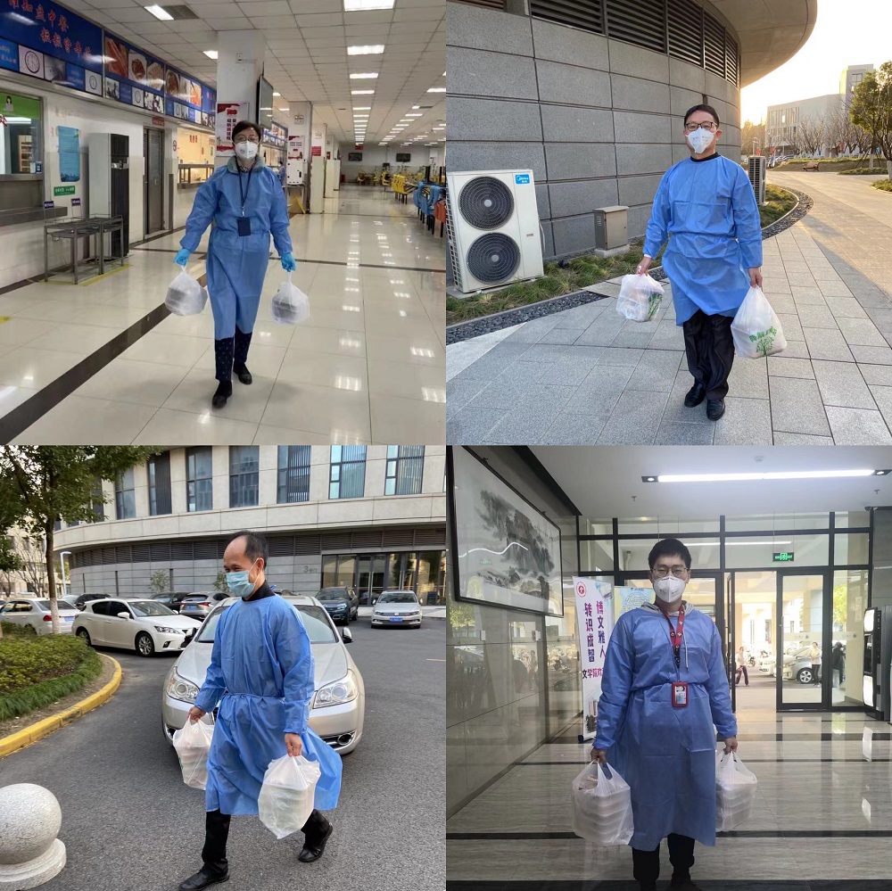 由于疫情防控需要,学院党委迅速响应学校指示,第一时间组建了由院党委书记吴仲钢带领的抗疫突击队,组员由副院长宁镇疆、青年教师刘蕊、黄凯、林威杰、院办杨丹阳、辅导员张旭、卜敏、学生骨干陈鹏、郭知平、李文凤、欧玥等组成,并第一时间奔赴指定地点,负责为嘉定校区转运至定点隔离酒店的128位同学全力做好服务保障。