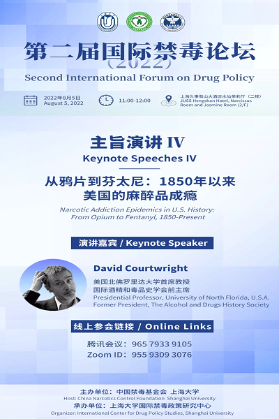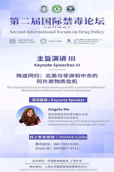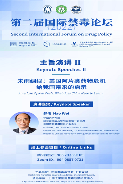 在主旨演讲环节,本届论坛共邀请了四位重量级主旨演讲嘉宾。中国国家禁毒办副主任于海斌在题为《凝聚各方智慧共谋治理之策:合力应对芬太尼问题带来的新挑战》的演讲中全面阐明了中国政府在应对芬太尼和合成阿片类物质问题上秉持的原则和理念、采取的系列措施以及取得的重大成效,彰显了中国政府推进毒品问题全球共治的责任担当。中南大学教授、联合国国际麻醉品管制局前第一副主席郝伟在题为《未雨绸缪:美国阿片类药物危机给我国带来的启示》的演讲中聚焦当下美国的合成阿片类物质滥用危机,就其成因和造成的诸多困境进行解读。联合国毒品和犯罪问题办公室研究和趋势分析处处长安吉拉·梅(Angela Me)在题为《殊途同归:北美与非洲和中东的阿片类物质危机》的演讲中站在全球的高度,利用大数据对美、中东和非洲等地区的合成阿片类物质危机进行了多维度分析。美国北佛罗里达大学首席教授、国际酒精和毒品史学会前主席戴维·卡特莱特(David Courtwright)在题为《从鸦片到芬太尼:1850年以来美国的麻醉品成瘾》的演讲中从历史视角全面解读了美国当前芬太尼和合成阿片类物质危机的社会和文化根源。