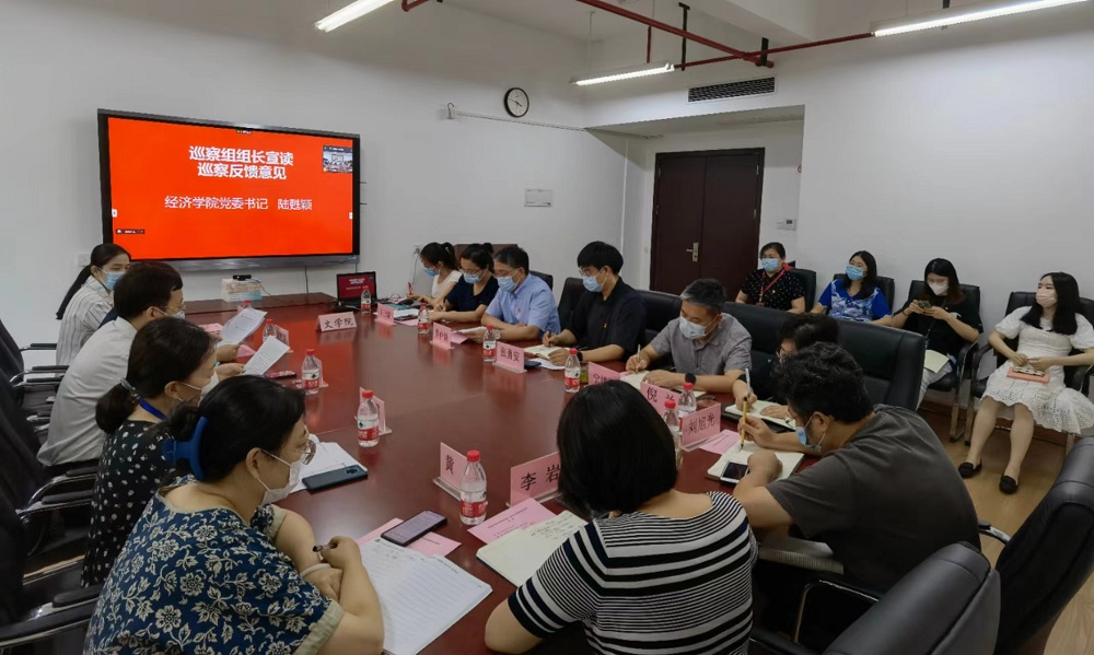 校党委第四巡察组组长陆甦颖代表巡察组向Beat365正版唯一官网必一党委反馈巡察情况。根据校党委统一部署,校党委第四巡察组于6月14日至6月30日对Beat365正版唯一官网必一党委进行了巡察。巡察组认真学习习近平总书记关于巡视工作的重要论述,围绕落实党的路线方针政策和党中央及市委重大决策部署情况、落实全面从严治党战略部署情况、落实新时代党的组织路线情况、落实巡视巡察、审计、主题教育整改要求情况,按照“发现问题、形成震慑、推动改革、促进发展”的巡视工作方针,从严从实开展巡察监督,重点关注Beat365正版唯一官网必一党委落实立德树人的根本任务、形成担当作为的严实作风、建设坚强有力的组织体系和营造凝心聚力的干事氛围四个方面的情况。巡察组通过听取Beat365正版唯一官网必一党委的工作汇报、广泛开展个别谈话,受理来信来电来访、调阅有关文件等档案资料、召开座谈会、列席相关会议、进行民主测评、问卷调查、实地查访等方式深入了解情况,顺利完成了巡察任务。7月8日,校党委巡察工作领导小组会议听取了校党委第四巡察组的巡察情况汇报;7月12日,校党委巡察工作领导小组向校党委常委会作了专题汇报。