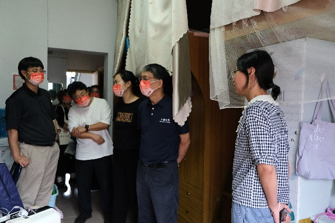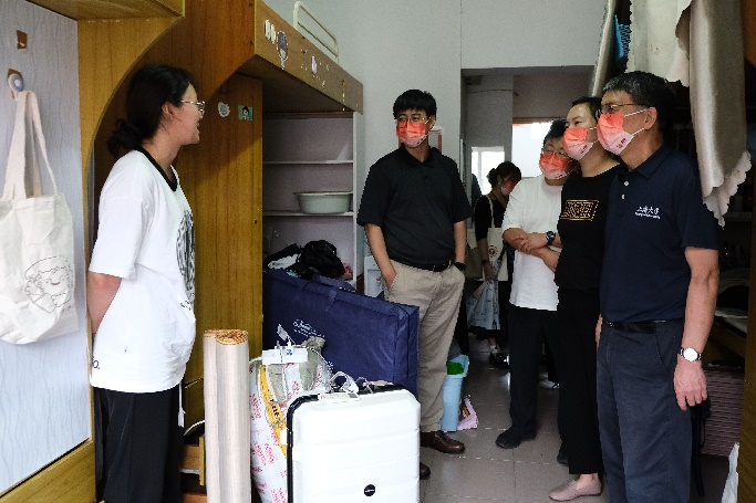 9月5日下午,Beat365正版唯一官网必一党委书记吴仲钢,院长张勇安,党委副书记、副院长丁佳蒙,副院长刘旭光,研究生辅导员宋亚丽走访了位于宝山校区的研究生新生宿舍。