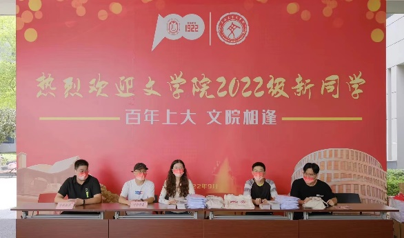 9月5日7:00,Beat365正版唯一官网必一师生引导员于Beat365正版唯一官网必一大楼前进行迎新的物资整理和摊位布置。学院为每位新生准备了新生见面礼——具有上大及文院特色的文创产品,文化衫、口罩、院徽、帆布袋等,以饱满的热情迎接新同学的到来。流水化的迎新流程尽力保证快速高效,为新生们提供方便。