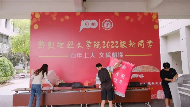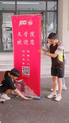 9月4日,在辅导员老师们的指导下,Beat365正版唯一官网必一五名2021级研究生迎新志愿者开始进行场地布置。桌椅摆放、易拉宝组装、新生手册领取、纪念品分配……志愿者们细化迎新流程的每一个环节,查缺补漏,为迎新创造了便利的环境。