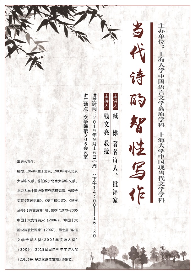 主讲人:臧棣,著名诗人、批评家