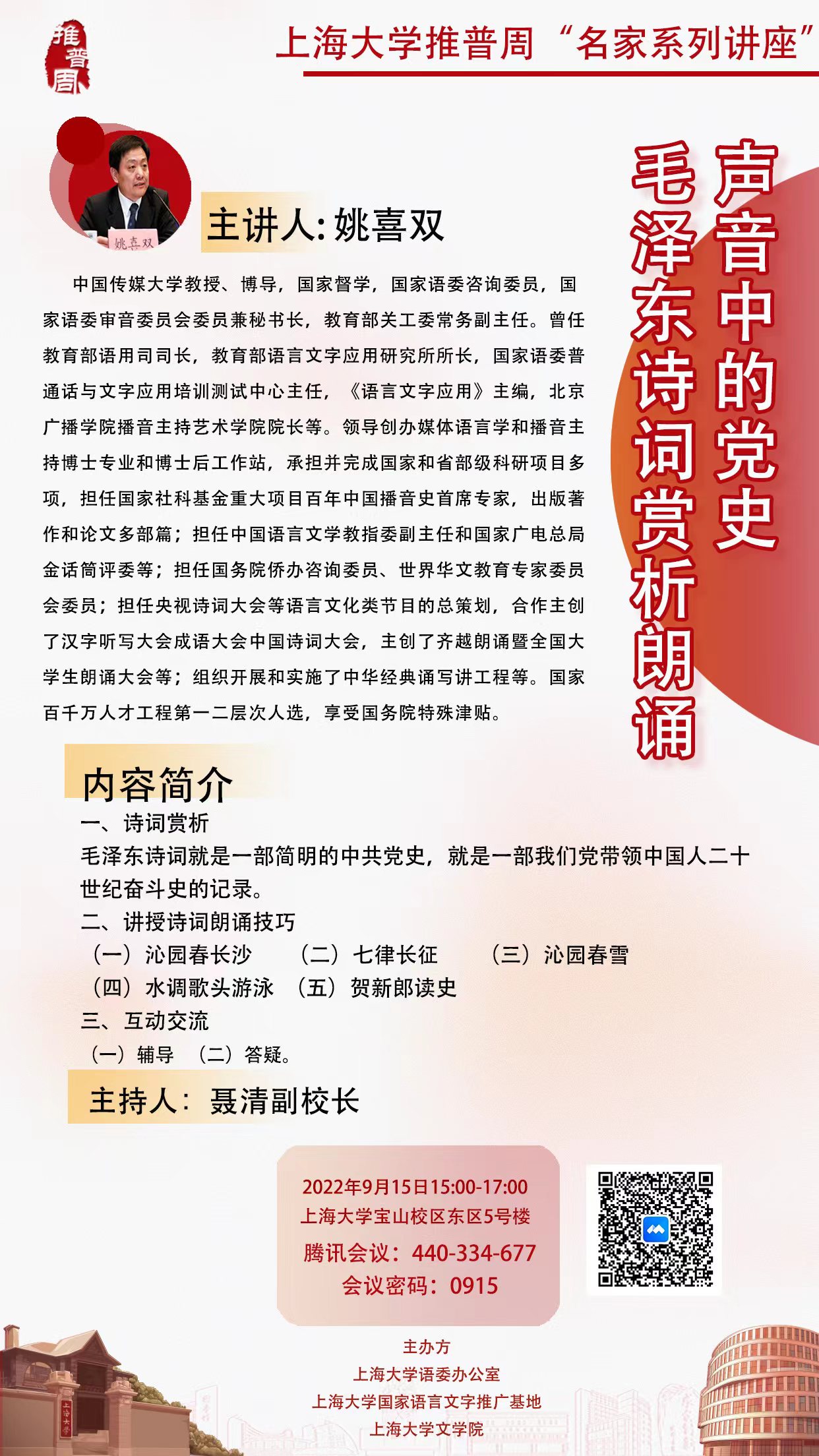 姚喜双:声音中的党史——毛泽东诗词赏析朗诵
