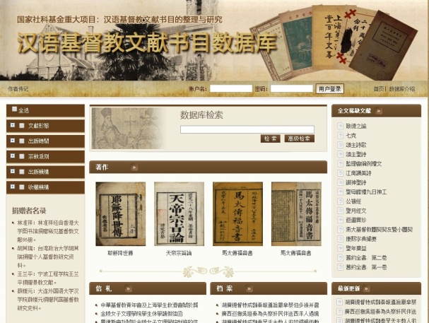 重要成果之一:汉语基督教文献书目数据库