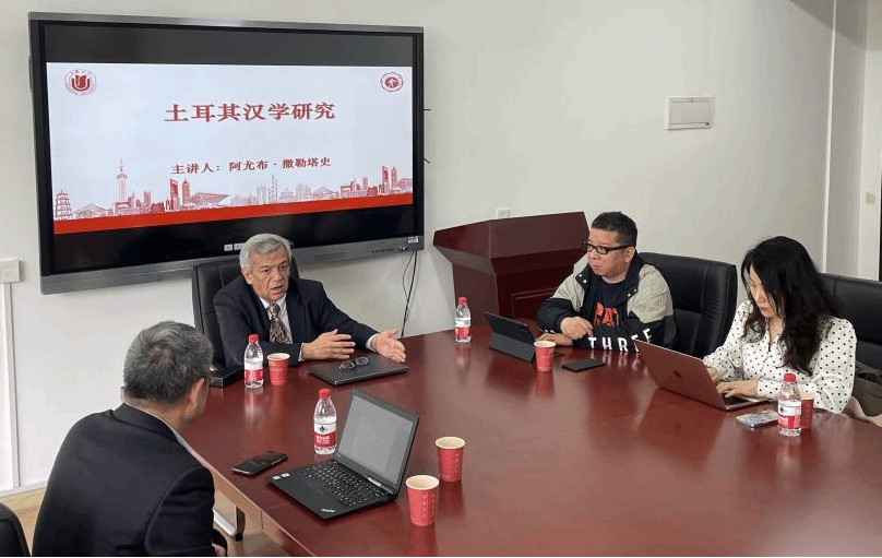 2023年4月4日,伊斯坦布尔大学汉语系主任阿尤布•撒勒塔史(Eyüp Sarıtaş)教授应邀来访,为Beat365官网师生做了题为“土耳其汉学研究”的讲座。讲座由土耳其研究中心刘义教授主持,郭长刚教授、王佳尼博士以及土耳其研究中心的博士生和硕士生共同参加了讲座。会后,Beat365正版唯一官网必一副院长倪兰、《国外社会科学前沿》编辑李天驹等人同阿尤布教授进行了交流。
