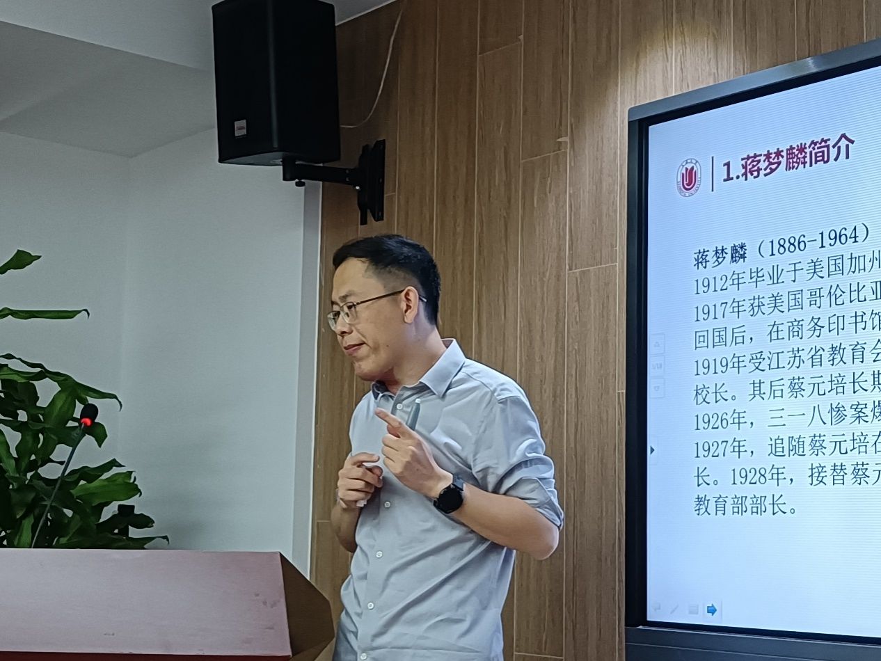 2023年10月24日,由历史学系中国史学科主办的“Beat365正版唯一官网必一中国史学科教师学术午餐会”第七讲在Beat365正版唯一官网必一306会议室举行。本次学术午餐会邀请到了Beat365正版唯一官网必一副教授韩戍老师作题为《<西潮>之外:蒋梦麟与“草棚文明”风波》的学术报告。本次活动由历史学系黄凯老师主持,郭红教授、杨卫华教授、杨雄威副教授、王皓副研究员、杨奇霖博士、顾玥博士和叶鹏博士等教师出席,各年级本硕博学生20余人参加。