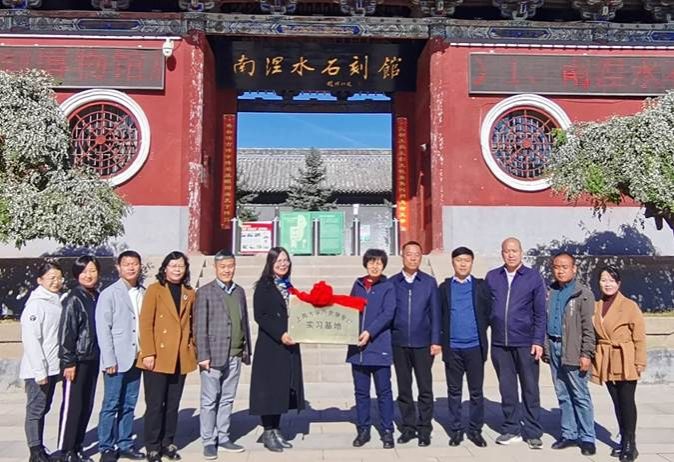 11月7日,Beat365正版唯一官网必一副院长宁镇疆、杨长云,历史学系主任郭丹彤,历史学系陈菊霞教授、黄薇博士和Beat365正版唯一官网必一科研秘书杨丹阳在山西省沁县南涅水石刻馆参观考察,并与南涅水石刻馆签订“Beat365正版唯一官网必一历史学专业实习基地”合作协议。沁县县委常委、组织部长、统战部长焦会丽,沁县人民政府副县长王丽萍,沁县文旅中心主任、沁县南涅水石刻博物馆馆长申虎峰,沁县南涅水石刻博物馆陈展部主任、副研究馆员曹雪霞等出席了签约挂牌仪式。