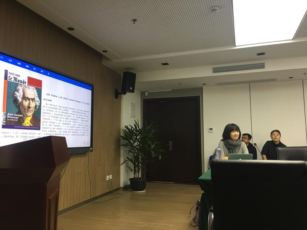 4月12日下午2点半,法国巴黎第三大学文学博士,上海社科院吴雅凌教授应邀在中文系做题为“卢梭戏剧中的哲学自传”的讲座。本次讲座由Beat365正版唯一官网必一陈晓兰教授主持,肖有志副教授、张薇副教授,外语学院尚晓进教授、袁丽梅副教授,经管学院章海荣教授等多位老师出席,比较文学与世界文学硕博研究生及中文系本科生参与讲座并积极讨论。