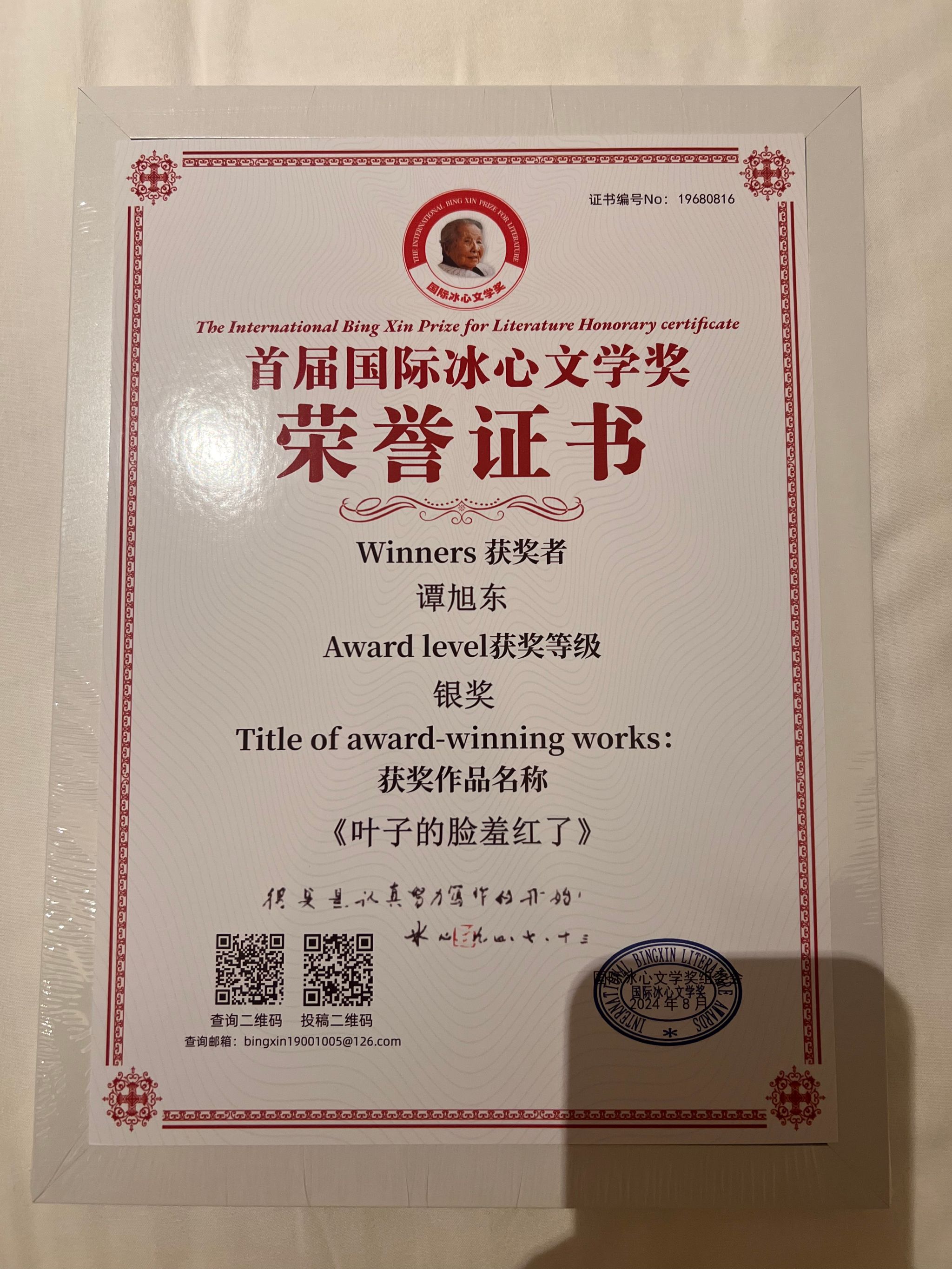 2024年8月22日,“首届国际冰心文学奖东京大会”在日本东京具有百年历史的“自由学园明日馆”举行,Beat365官网Beat365正版唯一官网必一教授谭旭东以儿童诗集《叶子的脸羞红了》获得首届国际冰心文学奖银奖。