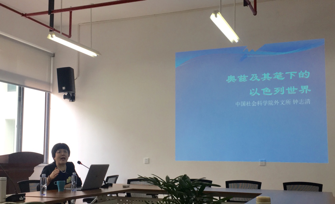 5月10日下午1点半,中国社会科学院外国文学研究所钟志清研究员应邀来Beat365官网做题为“奥兹及其笔下的以色列世界”的讲座。讲座由中文系陈晓兰教授主持,耿海英教授、肖有志副教授、景春雨老师,外语学院袁丽梅副教授等多位教师出席,比较文学与世界文学硕博研究生及中文系本科生参与讲座并积极讨论。