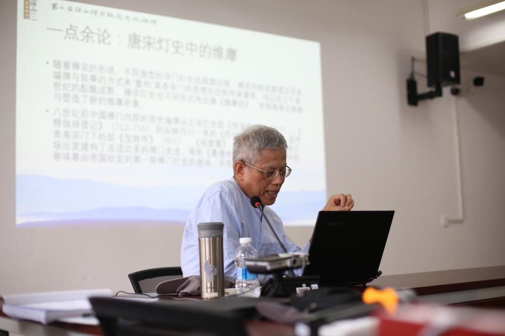 浙江理工大学宗教文化研究所的蒋海怒副教授主持了本次系列讲座的首场演讲,龚隽教授在演讲中介绍了近年来他对《维摩经》在中国禅宗史上的演变所作的研究,以《维摩经》对中国八世纪中期之后古典禅思想的影响为中心,可分别见出禅宗思想史上初期禅到古典禅的典范转移,及其对经典应用方式的变化;特别是从古典禅的“语录”与灯史对《维摩经》的使用上具体阐明这一时期禅宗与《维摩经》之间的复杂关系。