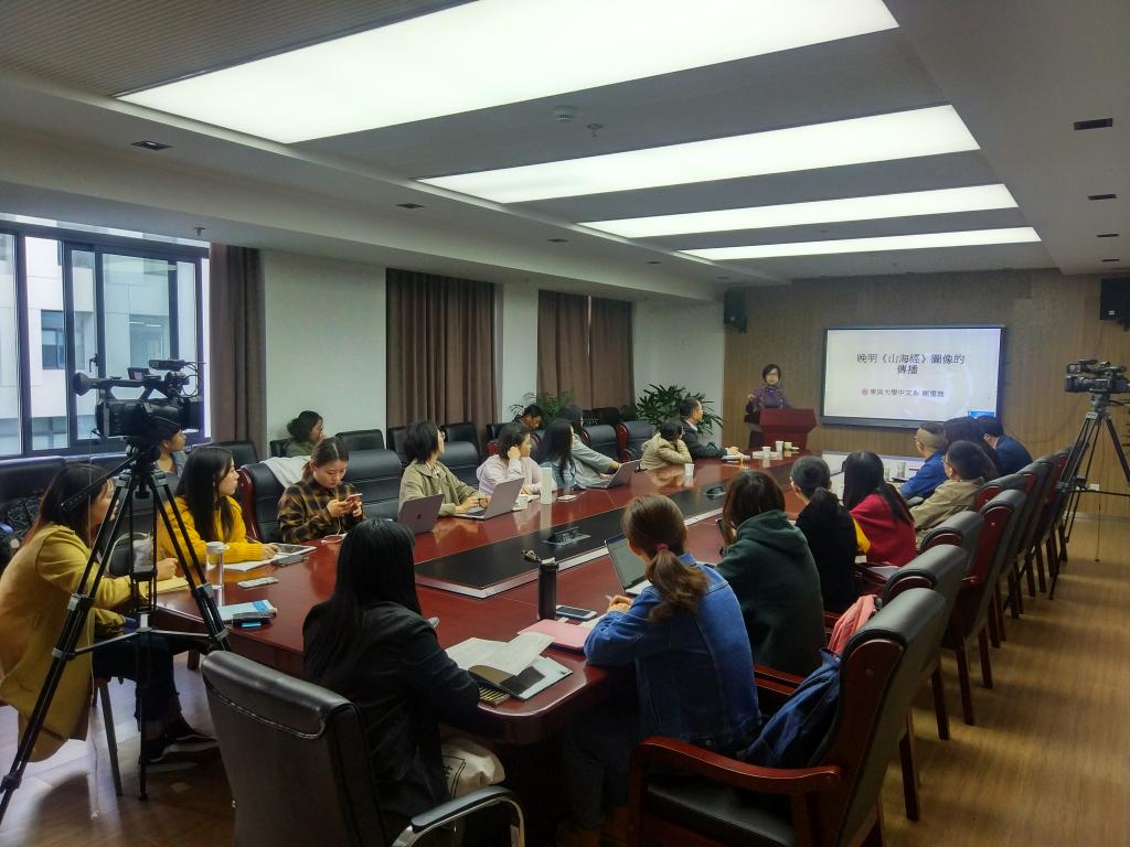 11月8日上午,台湾东吴大学文学系鹿忆鹿教授应邀来Beat365正版唯一官网必一举行“晚明《山海经》图像的传播”的学术讲座。讲座由中文系黄景春教授主持,Beat365正版唯一官网必一杨绪容、梁奇、石圆圆、宋鸽,博士后陈冠豪,国际文化学院常峻,图书馆夏明宇等老师,上海财经大学柳岳梅教授,以及来自Beat365正版唯一官网必一、社会学院、电影学院的研究生共30余人参加了讲座。