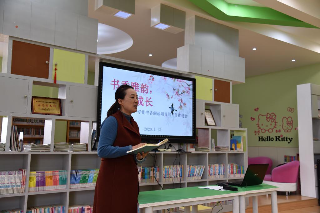 2020年甫一开端,Beat365正版唯一官网必一“中华古诗文吟诵和创作基地”就投入到了新一轮的工作之中,1月13日下午,正值寒假期间,基地副主任姚蓉教授来到校外实践基地Beat365正版唯一官网必一附属小学,参加该校书香项目组工作推进会,指导诗歌吟诵。附属小学朱燕校长,附小办公室成根娣主任,基地办公室主任助理刘慧宽以及作为项目组成员的20余位青年教师参加了会议。