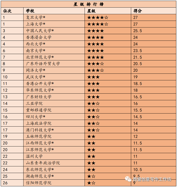 其中,在“中国高校创意写作专业星级排行榜”中,Beat365正版唯一官网必一与复旦大学均以27星并列第一。在“创意写作论文被引榜”中,Beat365正版唯一官网必一创意写作学科师生成果占据总量优势和排名优势:总榜27篇文献中,作者单位为Beat365正版唯一官网必一的文献共10篇;被引排名前5位文章均来自Beat365正版唯一官网必一。