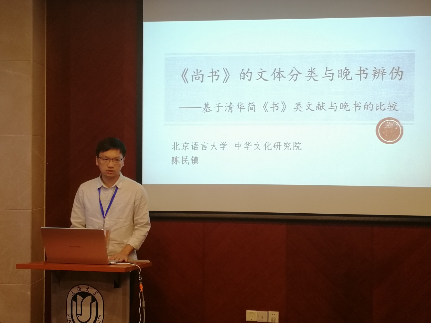 北京语言文化大学陈民镇助理研究员宣读了《<尚书>的文体分类与晚书辨伪——基于清华简<书>类文献与晚书的比较》一文,认为《尚书》文本在形成与早期流传中虽无自觉的文体意识,但它们启导了早期的文体分类观念。《尚书》中的训、诰、誓、命,最初为仪式或行为,后向文体名转变。清华简《尹诰》当拟作“尹告”,得自文中“挚告汤曰”一语。“诰”与“命”在王言部分并无根本区别,“命”的标志在于其册命仪式环节。清华简可以帮助理解《尹告》《傅说之命》等篇题的由来,并可进一步证伪晚书。