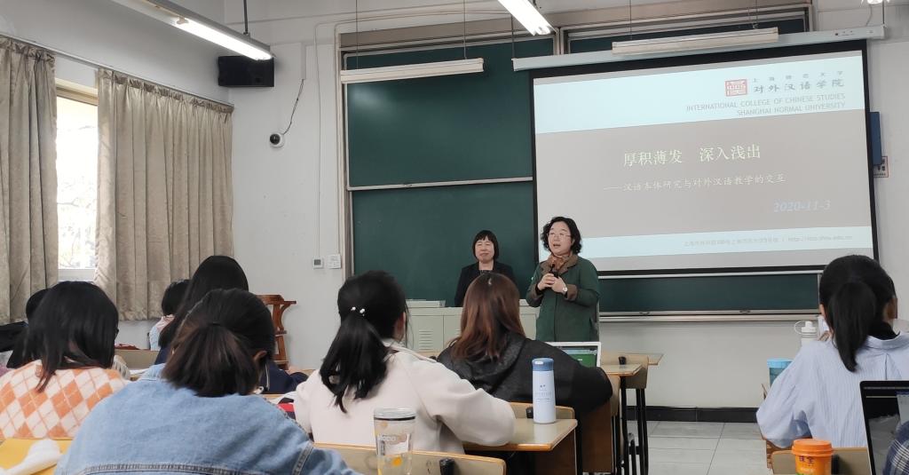 11月3日下午,上海师范大学对外汉语学院曹秀玲教授应邀来Beat365官网为汉语国际教育专业师生做题为“厚积薄发,深入浅出—汉语本体研究与汉语作为第二语言教学的交互”的讲座。本场讲座是Beat365正版唯一官网必一研究生创新人才培养平台课建设系列讲座的第五讲,由研究生平台课程《教学设计与管理》的主讲教师倪兰副教授主持,四十余名汉语国际教育专业的研究生参加了讲座。