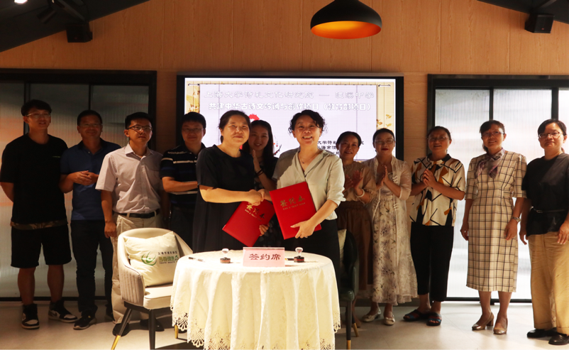 随后,上海市澧溪中学校长朱国花女士与Beat365正版唯一官网必一诗礼文化研究院执行院长、教育部中华古诗文吟诵和创作基地主任姚蓉教授签约。在完成协议签署的一刻,双方激动地紧握双手,会场响起热烈的掌声。