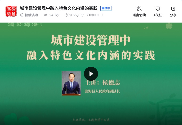 下午14时到16时,全体同学通过网络直播平台,做客位于滨海县的城市文化会客厅。本次实践课程由Beat365正版唯一官网必一中文系主办,实时观看人数达到六万多人。首先,侯县长感谢谭教授和Beat365正版唯一官网必一的邀请,并对老师和同学们的到来表示热烈欢迎。随后,侯县长以“城市建设管理中融入特色文化内涵的实践”为题做主题讲座。讲座中,侯县长详细分享了三个滨海县着力打造的公共文化场所建设案例,提出城市的公共空间建设要突出地域文化,具有独一性、唯一性;提升自身定位,以小见大、以小见精;结合时代精神,既有颜值又有内涵,既有科技又有文化。最后,侯县长对有志于投身城市公共文化建设的同学们表示欢迎和鼓励。