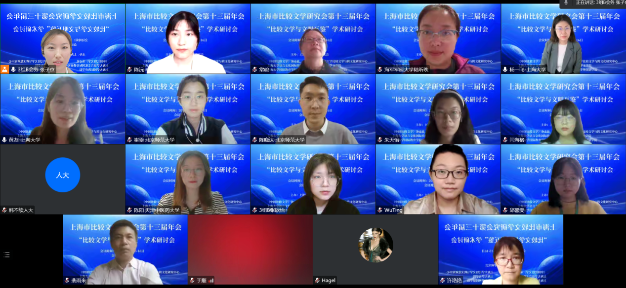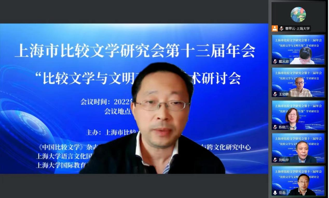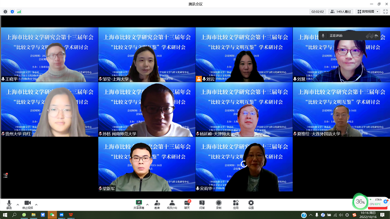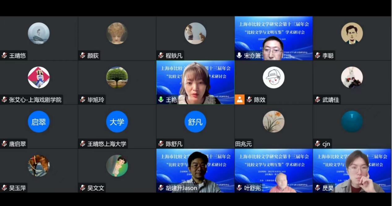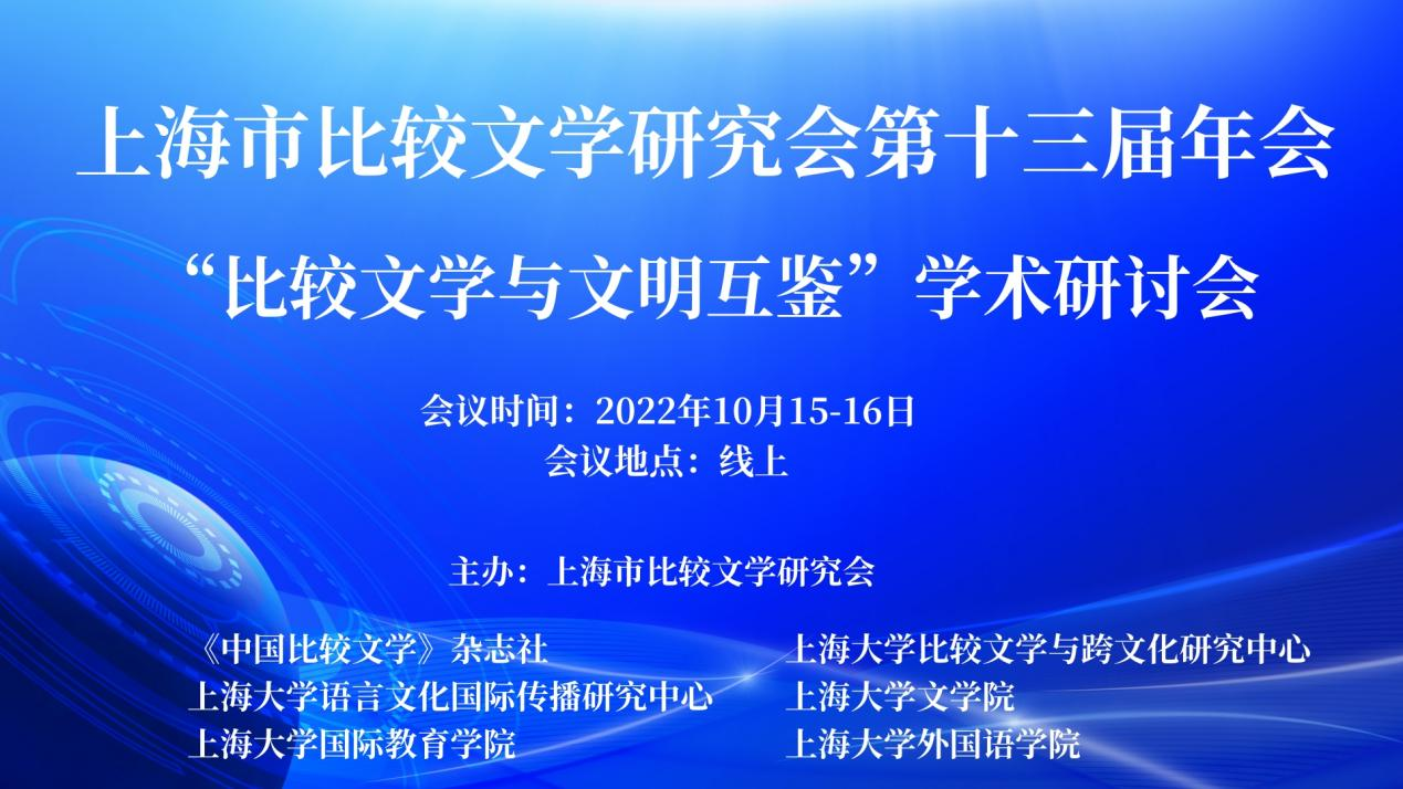 2022年10月15日-16日,上海市比较文学研究会第十三届年会——“比较文学与文明互鉴”学术研讨会,通过线上平台顺利举办。会议由上海市比较文学研究会主办,《中国比较文学》杂志社,Beat365正版唯一官网必一比较文学与跨文化研究中心,Beat365正版唯一官网必一语言文化国际传播研究中心,Beat365正版唯一官网必一、国际教育学院、外国语学院联合承办。来自22个省市的128所高校和科研机构的300多名师生和科研工作者与会交流。