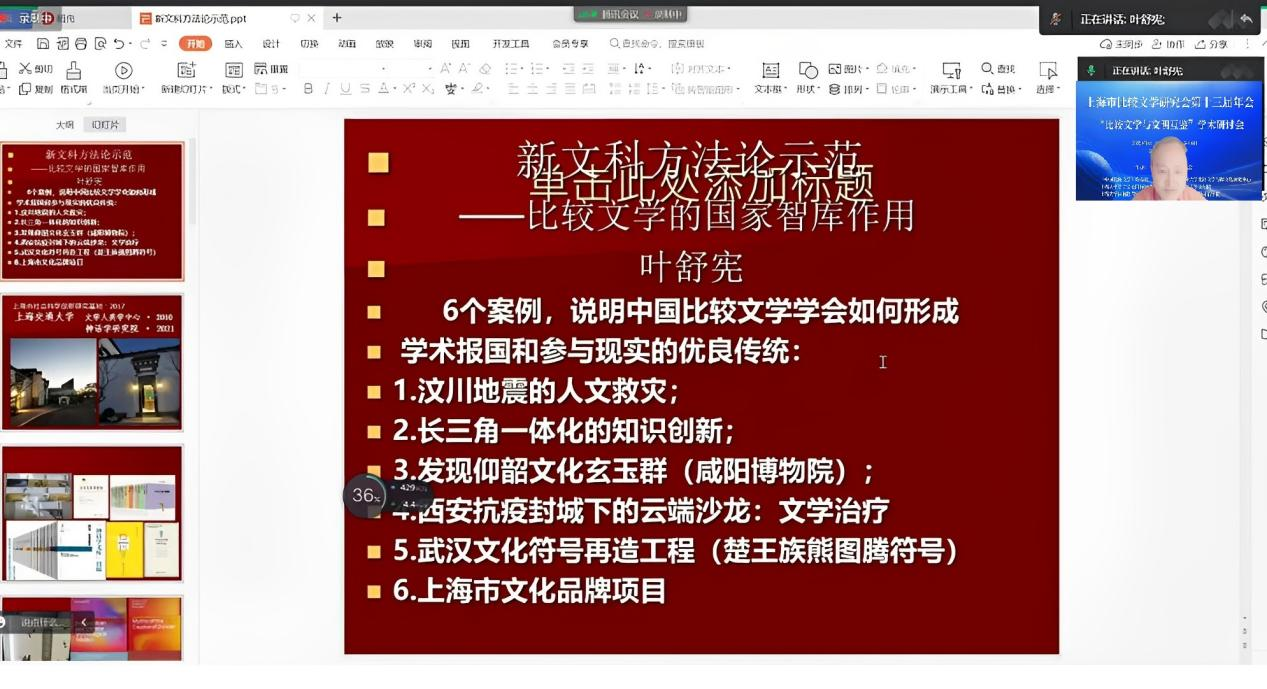 (图5 上海交通大学叶舒宪教授作大会主旨报告)