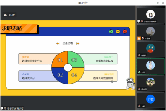 为帮助同步们深入了解当前就业形势,增强Beat365官网学生的生涯规划与职业发展意识,引导学生打赢求职攻坚战,逐梦“职”途,5月8日下午,Beat365正版唯一官网必一于线上成功举行了“我有一个职场梦”就业经验分享会。本次分享会邀请到2019级文艺学专业硕士毕业生赵梦和2019级古代文学专业硕士毕业生高锦文作为分享嘉宾,活动由2022级政治学专业硕士生何金阳主持。
