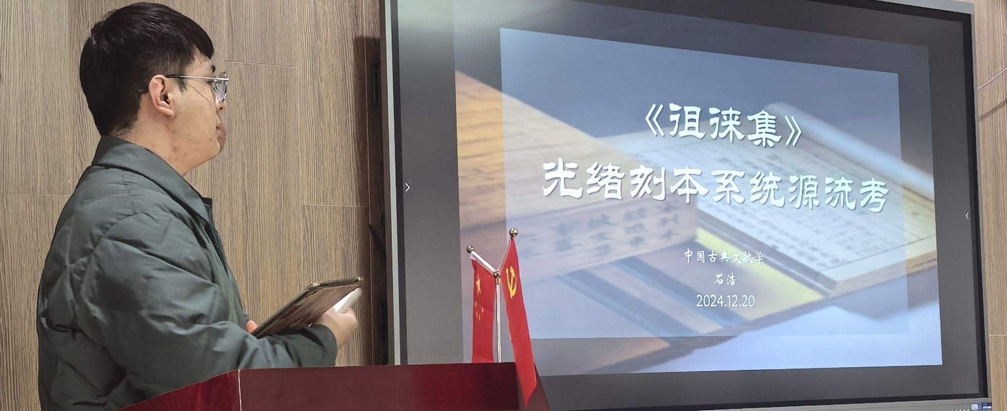 2023级中国古典文献学专业硕士研究生石浩以《<徂徕集>光绪刻本系统源流考》为例,深入剖析了论文写作的思路和方法。