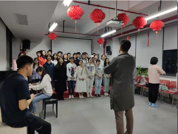 为了能更好地完成这次表演,两个学院的同学们辛苦排练,并在音乐学院学长学姐的指导下,多个声部此起彼伏,交织成一首壮怀激烈的乐曲。