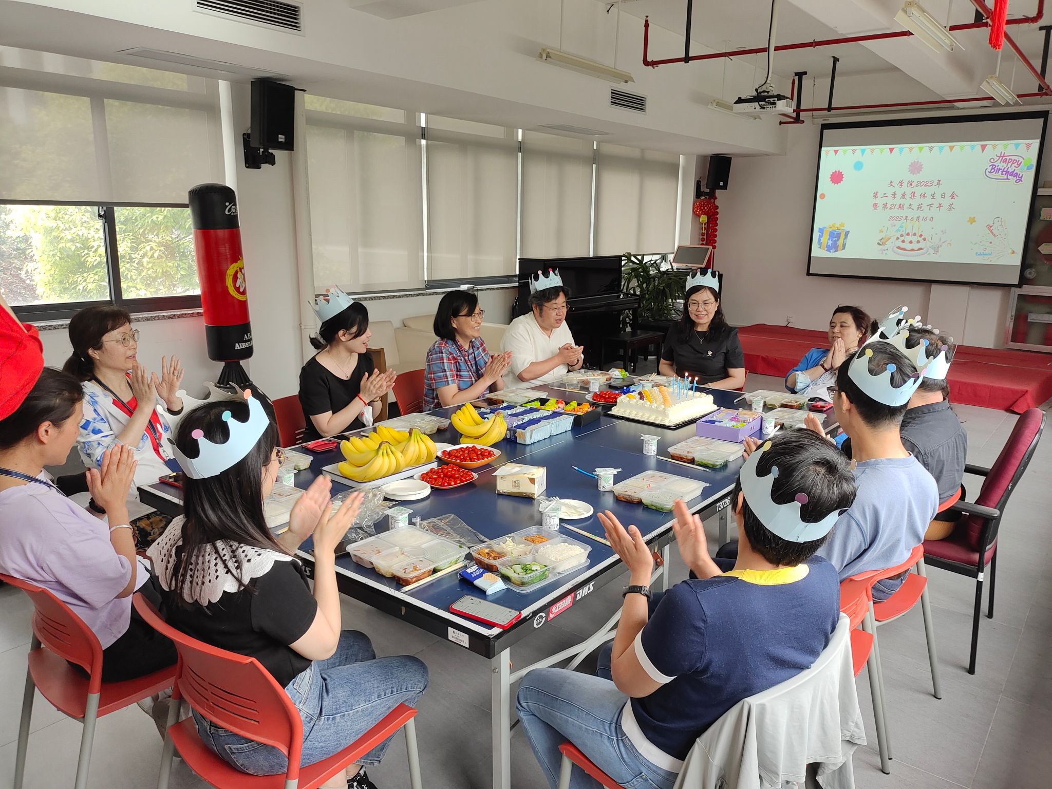 6月16日中午,学院2023年第二季度教工集体生日会暨第二十一期文苑下午茶活动在学院教工之家举办。学院党委书记陆甦颖,党委副书记、院长刘旭光,副院长倪兰及二十余位教职工参加本次活动。