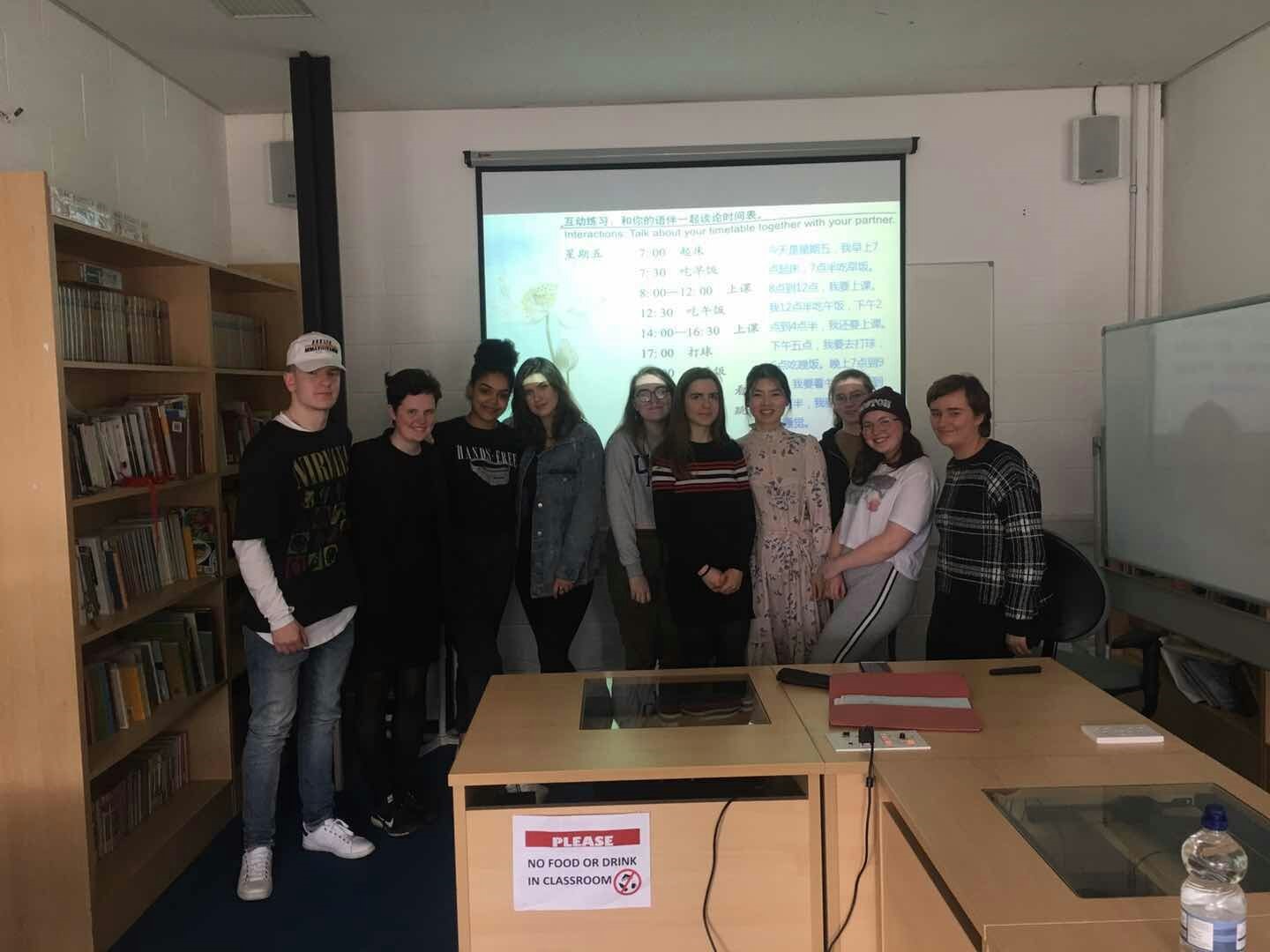 在爱尔兰的这一年,我最感恩的就是遇到了一群可爱的学生。虽然有时会觉得课时太长,但适应之后,反而很期待每周与学生见面。二年级的学生性格最活泼,即使学生们在课上有些调皮,但仍不失可爱之处。有一次上课,二年级学生“骗”我其他学生都没来上课,正当我一头雾水时,他们突然给了我一个惊喜,原来是瞒着给我庆祝生日,令我非常感动。二年级汉语基础最好的学生,芳乔、雪欣、双如和蔚颐不管是教学上还是生活上都给了我很多的帮助。与他们相见时的鼓励,离别时的聚会,都是我在爱尔兰最珍贵的回忆,但是我们的缘分并不只是到此为止,因为今年我们还能在上海相见。